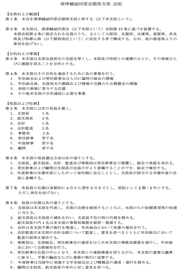 今後 社会は益々変貌し多様化し、どう変化していくか予断を許しませんが、関西支部は会員相互の親睦及び情報交換や母校と郷里の発展のために寄与していきたいと思いますので、皆様の更なるご支援・ご協力のほどよろしくお願い申し上げます。